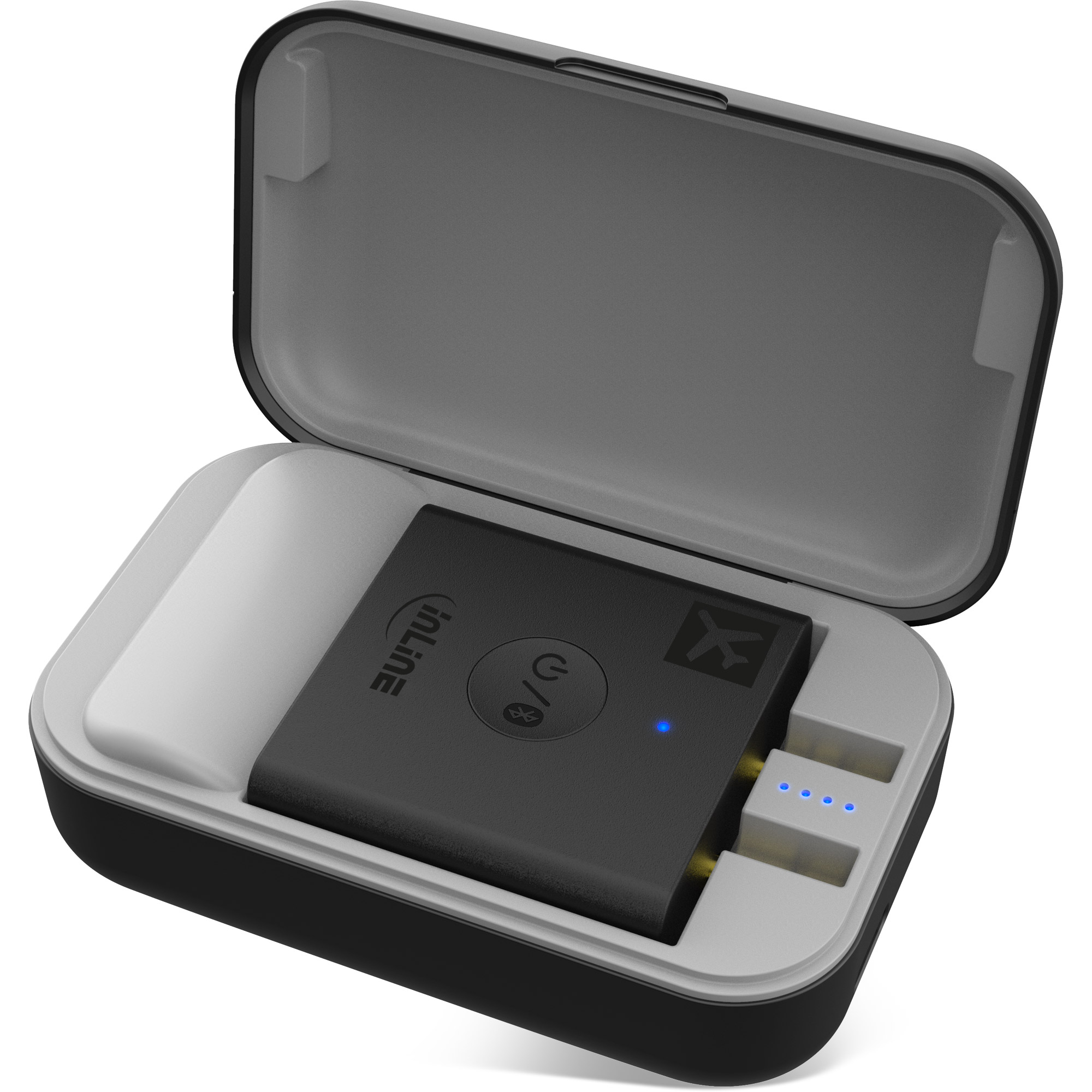 Der InLine Bluetooth Flight Audio Adapter überträgt die Audiosignale des Board Entertainment kabellos per Bluetooth in höchster Qualität auf Ihren Lieblings-Kopfhörer, egal ob In-Ear, On-Ear oder Over-Ear. Der Adapter ist zu den gängigen ein-, zwei- und dreipoligen System kompatibel und verfügt außerdem über einen USB-Anschluss. Die Stromversorgung wird auch auf Langstrecke durch ein Akku und Lade-Case sichergestellt. Weiterhin kann der Bluetooth Flight Audio Adapter problemlos als akkubetriebener Bluetooth-Transmitter (Sender) an Audioquellen mit 3,5mm Stereo-Klinkenausgang betrieben werden. Somit können Sie auch unterwegs abseits vom Flugzeug Bluetooth Audio auf Ihre Kopfhörer streamen.Bluetooth: Version 5.0 mit aptX HD, aptX Low LatencyUnterstützte Codecs: aptX, aptX HD, aptX LL, SBC, AACBluetooth-Profile: A2DP und AVRCP, GAIA, HSP und HFPBluetooth-Reichweite: bis zu 20 MeterEingabe: 2x Klinke 3,5mm Stecker, 1x USB (bei Anschluss an einen PC)Ausgänge: Bluetooth / verwendbar mit 1 oder 2 Bluetooth-Kopfhörern gleichzeitigUSB-Audio: Audio-Abtastrate: 48kHz / 16-Bit / Kompatibel mit Windows, MacOS, Linux / keine Treiberinstallation notwendigAkku: Flight Audio Adapter: 180mAh / Lade-Case: 900mAhStromversorgung: Audio-Adapter: USB Typ-C DC5V 500mA / Lade-Case: USB Typ-C DC5V 500mA (es wird ein optionales USB Netzteil als Ladequelle benötigt)Akku-Laufzeit: bis 6h / bis 30h mit LadecaseBetriebstemperatur: -10°C - 45°CLagertemperatur: -20°C - 60°CUnterstützte Abtastrate: =48 kHzGehäuse: KunststoffFarbe: schwarzAbmessungen Adapter: 5x3,9x1,5 cmAbmessungen Case: 8x5x3,1 cmGewicht Adapter: 20gGewicht Case: 60gLIEFERUMFANG:1x InLine Bluetooth Flight Audio Adapter1x Lade-Case1x USB Typ-A zu Typ-C Kabel 1m1x Anleitung